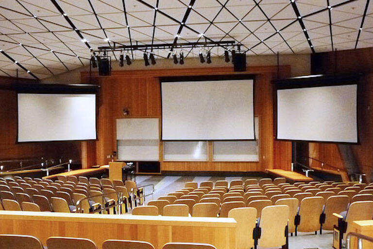 - Motorized Screen - raise/lower from the lectern AV control panel or the manual switch to the left of the whiteboards